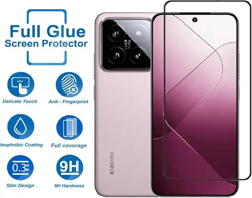 گلس تمام صفحه Xiaomi 14 با داشتن درجه سختی 9H، یک لایه محافظتی مقاوم در برابر خط و خشهای روزمره و ضربات احتمالی ایجاد میکند و از آسیب دیدن صفحه نمایش ارزشمند شما جلوگیری مینماید.