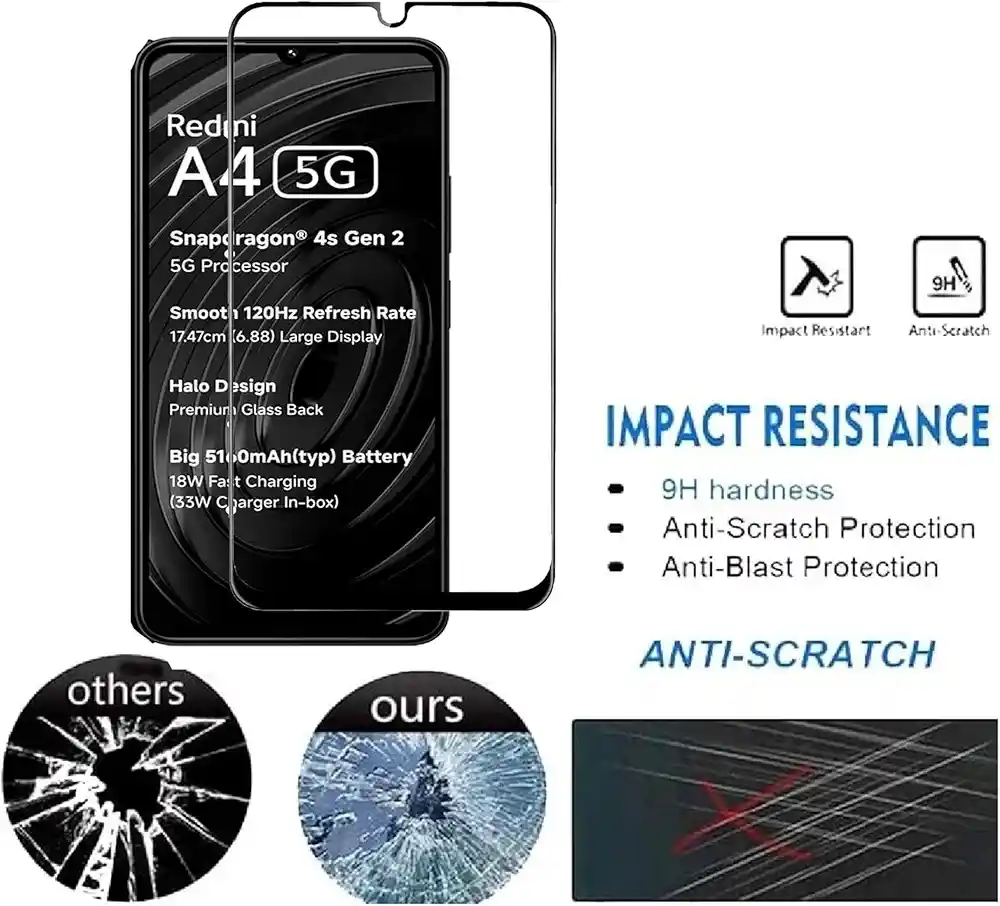 یکی از اصول اساسی در طراحی این گلس، ایمنی است. در صورت وارد آمدن ضربههای شدید، گلس به قطعات کوچک و غیربرنده تبدیل شده و احتمال آسیب رسیدن به نمایشگر موبایل شما را به حداقل میرساند. این ویژگی مشابه عملکرد شیشه سکوریت است که در صورت شکستن، به قطعات کوچک و ایمن متلاشی میشود و خطرات ناشی از تکههای بزرگ و تیز شیشه را کاهش میدهد. محافظ لبههای گوشی Xiaomi Redmi A4 نیز از دیگر مزایای طراحی این محصول است.