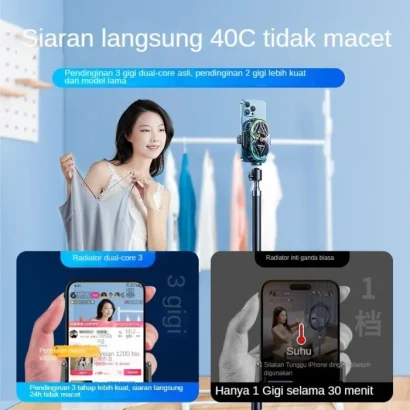 یکی دیگر از مزایای ویژه فن خنک کننده گوشی موبایل مدل RS3 15W رادیاتوری دوگانه این است که میتوان آن را به سه پایههای موبایلی متصل کرد. این قابلیت بهخصوص برای استریمرها و تولیدکنندگان محتوا که نیاز به تثبیت گوشی در یک زاویه خاص دارند اهمیت دارد. بدون اینکه وزن اضافی یا مشکل در نصب ایجاد شود، فن RS3 در کنار سه پایه، یک سیستم خنک کنندگی و ضبط حرفهای و بیدردسر را فراهم میکند و خیال کاربر را از هر جهت راحت میسازد.